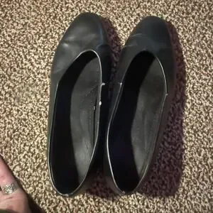 My Wife's well worn Classic black women's slip-on ballet flats. Soft, smooth upper with a rounded toe for everyday comfort. Lightweight and versatile for work or casual wear. Easy to pair with dresses, skirts, or jeans.