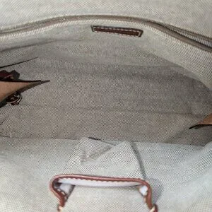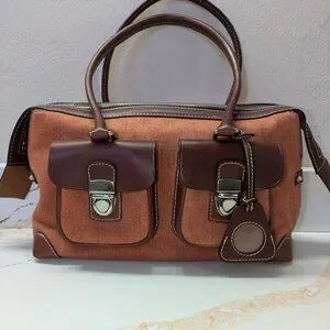 Dooney & Bourke 3fer! Double Pocket Tote. Gorgeous Jacquard and leather bag with 2 exterior front flap pockets, main zippered compartment for secure storage, rear zippered pocket, and 6 feet. Also comes with matching wristlet and a key chain! Some small scratches on the leather could use some more leather conditioner. There is a small scratch on one buckle. This bag is unique and beautiful. 3 pieces! Don't miss this fabulous find! Come to my next show and ask me to show you the whole bag, wristlet and key chain. Still has manufacturer's sticker inside!