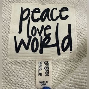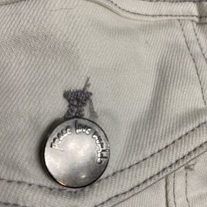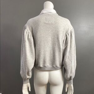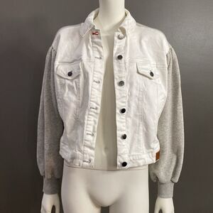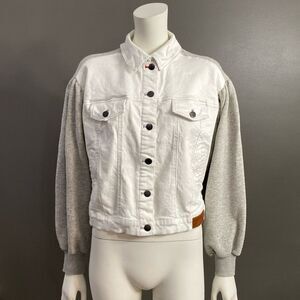 Peace Love World White/Gray Chic Denim Jacket Puff Gray Sleeve Oversized SZ XXS