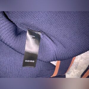 NEW REISS Ella Color Blocked Knitted Belted Midi Navy/Caramel Dress sz M