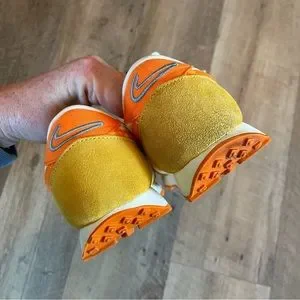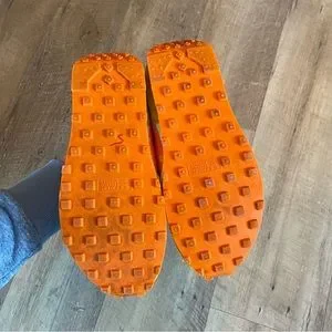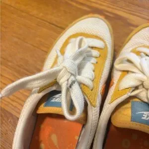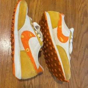 Only lightly worn by me. There is a small black stain on one of the shoelaces.