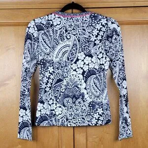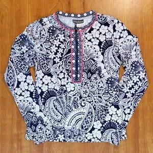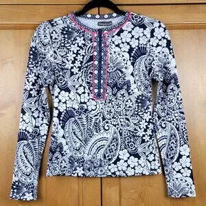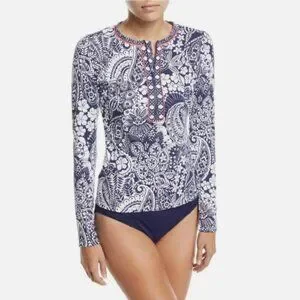 Tommy Bahama Paisley Paradise Navy & White Half Zip Rash Guard Swim Shirt - XS