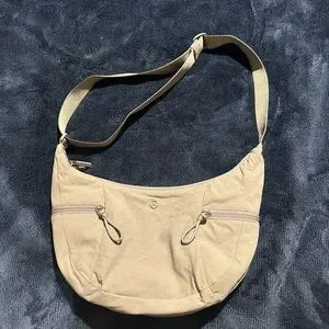 Lululemon shoulder hobo with a curved silhouette. Exterior zip pockets for quick access. Subtle logo accent on front. Adjustable shoulder strap for easy wear. Per website color is warm ash grey but looks taupe to me.