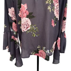Live 4 Truth Gray Pink Floral Long Wide Sleeve V Neck Lightweight Blouse size m