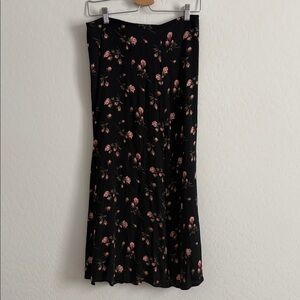Reformation Zoe side-slit midi skirt in the Romy black and floral skirt Sz 8, great used condition, no stains or scratches.