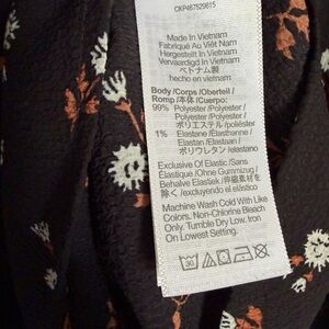 Embroidered along the smocked neckline and cuffs, this airy crinkled georgette top has a ruffled mockneck with buttons down the front. So sweet, printed with tiny floral motifs.