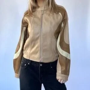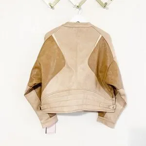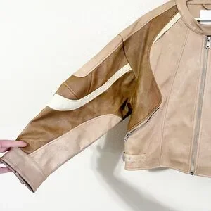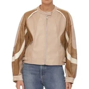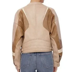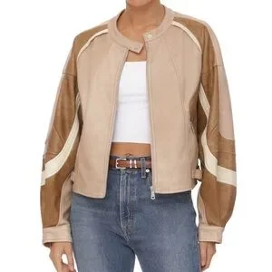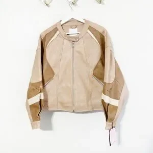 Avec Les Filles Faux Leather Racing Moto Bomber Colorblock Jacket NEW size Large