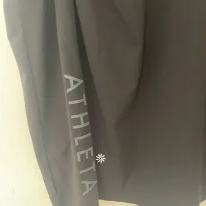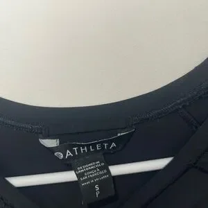 Sleek black long sleeve top. Features Athleta branding on sleeve. Perfect for active wear.