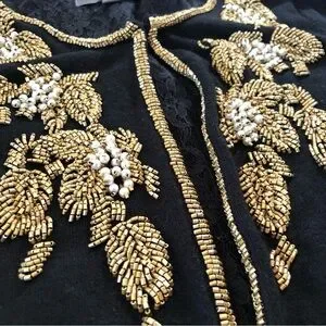 Twenty One Black Beaded Cardigan Sweater Women’s L Gold Beads Pearls Lace Lining