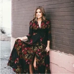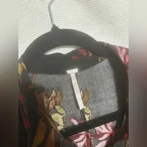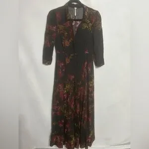 Rare Free People After The Storm Black Red Floral Print Boho Maxi Shirt Dress 4