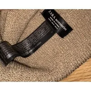 Zara Knit Gold Shimmer Knit Beanie Metallic Sparkle Slouchy Hat Soft Women’s