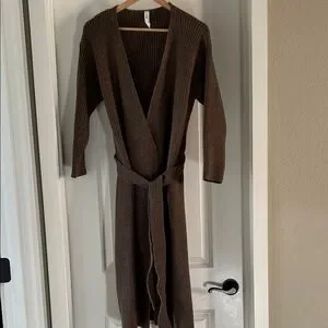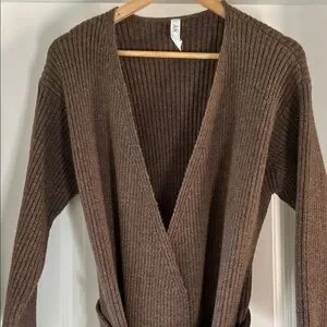 Amadi Anthropologie Women’s Alma Cozy Cardigan Ribbed Belted Brown