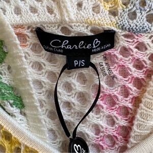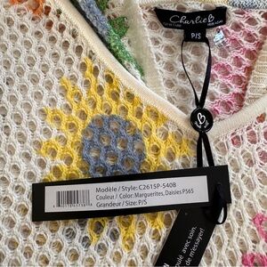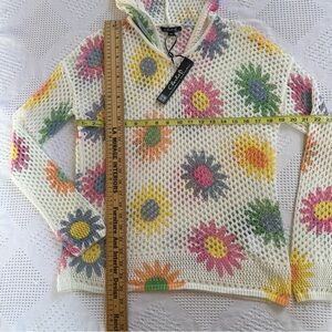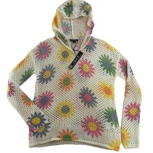 Charlie B Open Fishnet Crochet Multi-Color Daisy Hoodie Sweater-Small-Coquette