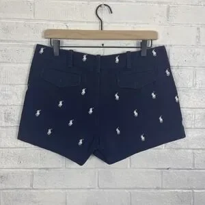 Ralph Lauren Sport Shorts Womens Size 6 Navy Blue Embroidered Pony Chino Summer