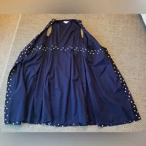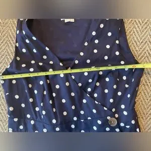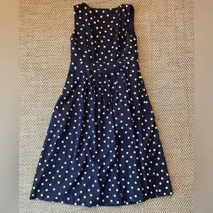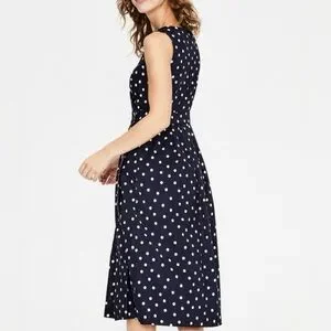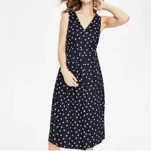 Boden women’s 10P Arwen Wrap Linen-Blend Midi Dress in Navy Polka Dot