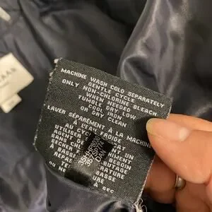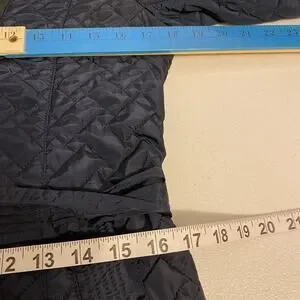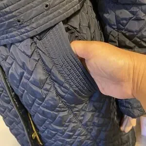 Cole Haan Signature NavyBlue Leather Trim quilted belted Coat Jacket SP Zip Snap
