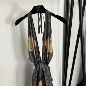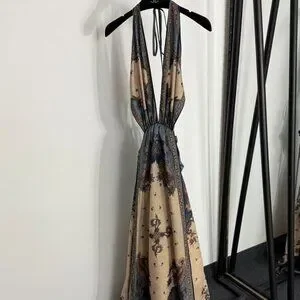 This stunning resort-style dress showcases Zimmermann’s signature floral print and flowing silhouette, creating a feminine and sophisticated look. The halter neck tie and lightweight fabric make it perfect for vacations, beach events, summer parties, and special occasions.