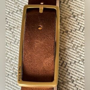 rag & bone Brown Suede Belt with Gold Buckle