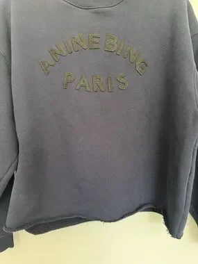 Anine Bing "Jaci" Washed Navy Black Paris Lettering Cotton Sweatshirt *Altered*