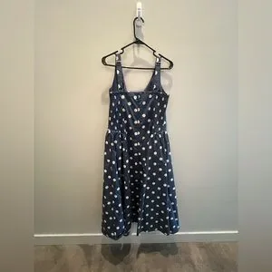 This flattering midi dress features a scoop neckline with subtle picot-trim detail, back smocking, adjustable straps, a dipped waistline with a flowy skirt and a seamed-in bra with removable pads to go bra-free. Imported. Body And Lining:100% Cotton. Never worn. No longer available online. Happy to negotiate!