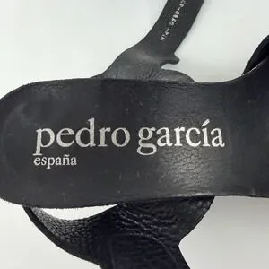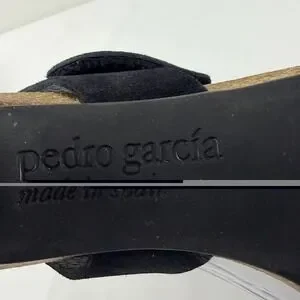 Pre-owned Pedro Garcia women's heels sandals in black suede. A sophisticated and minimalist European design known for high-quality craftsmanship and comfort.