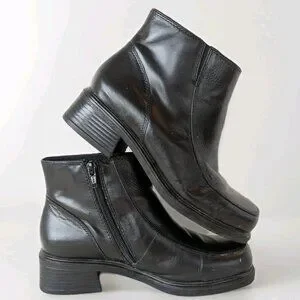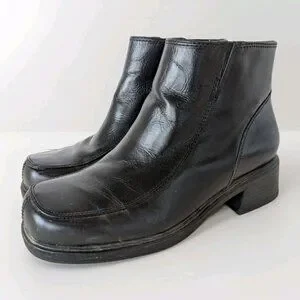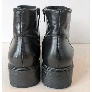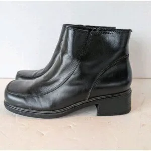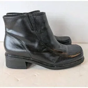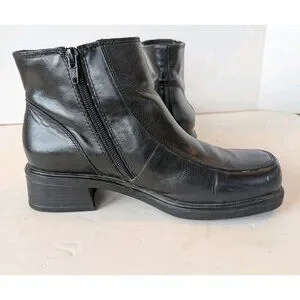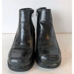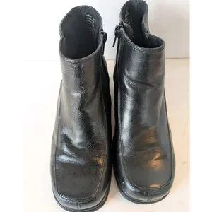 Earth Shoes Marion Leather Ankle Boots Women's Size 7 Chunky Black Zip Shoes