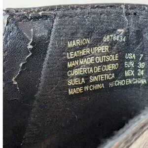 These boots are made of leather and have fully functional zippers on side. They are in good condition with some minor creasing to the leather. Please carefully view all photos.