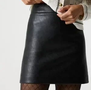 🖤 Structured, polished faux leather mini that instantly sharpens any outfit — clean A-line shape, smooth finish, and an easy go-to for work, nights out, or styled casual with knits and boots.