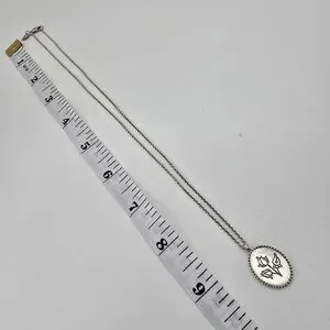Me & Ro 925 Sterling Silver Oval Pendant Necklace with Floral Motif