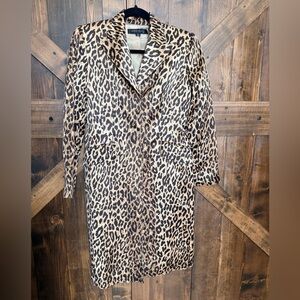 Vintage ANNIE KLEIN Suits 100% Silk Leopard Print Petite Duster Jacket Size 2P