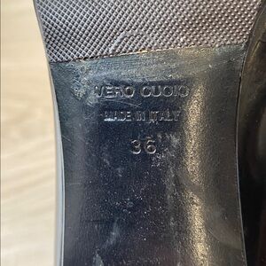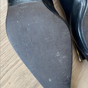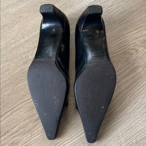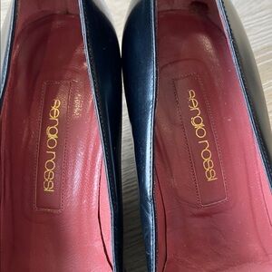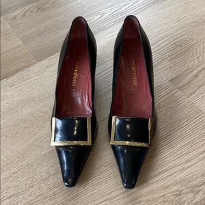 Sergio Rossi Black Leather Pumps Gold Buckle Square Toe Heels Classic Designer
