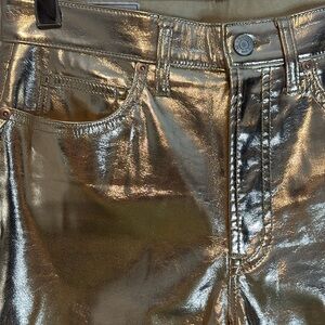 Gap high rise metallic vegan leather gold slim jeans size 28