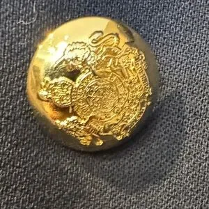 Sophisticated navy blazer with striking gold buttons and embroidered crest. Ideal for formal events.