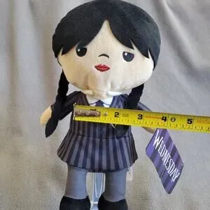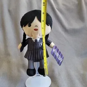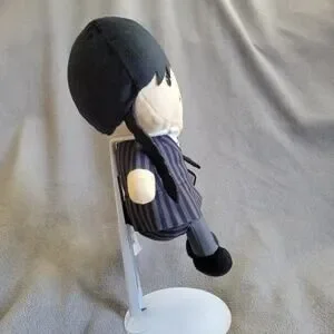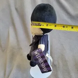 This soft plush doll captures the modern look of Wednesday Addams. Featuring authentic character details, she is perfect for display or as a cozy companion for fans of the Addams Family universe. The plush body is clean and free of stains, maintaining its shape well for collectors.