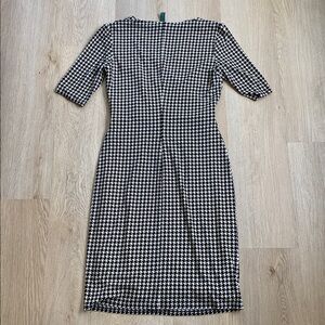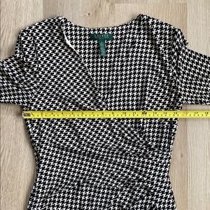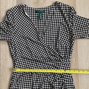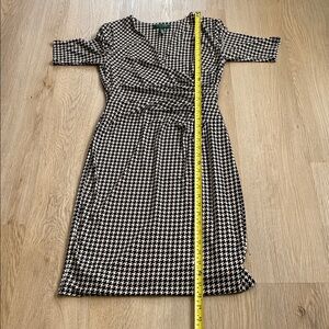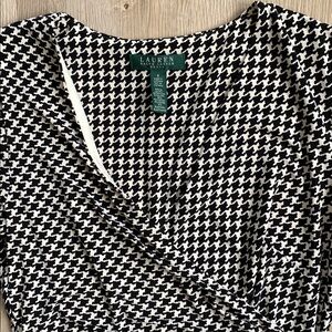 Lauren Ralph Lauren Houndstooth Faux Wrap Dress Black White Career Office Midi