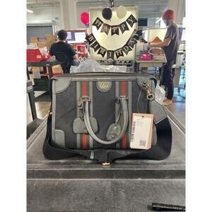 Elevate your style with the iconic Gucci Bauletto Top Handle Bag in GG Canvas and Leather. Crafted in Italy, this medium-sized bag combines signature GG canvas with smooth leather for a luxurious look. The structured silhouette is accented with gold-tone hardware and a detachable shoulder strap for versatility. With a spacious interior and multiple pockets, it's perfect for keeping your essentials organized while making a chic statement. Add a touch of sophistication to any outfit with this timeless Gucci accessory.