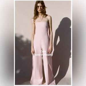 Zara Strapless Wide-Leg Jumpsuit in Pale Pink