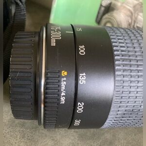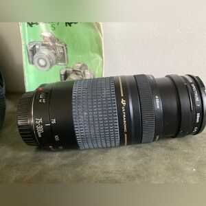 Original instruction manual, original flash attachment, original shoulder strap; upgraded zoom lens 75-300 mm;