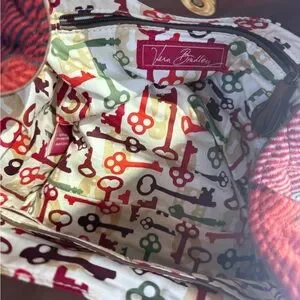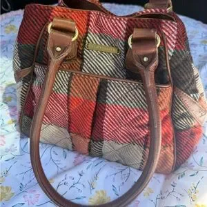 Vera Bradley Red Multi Plaid Wool-Blend Shoulder Bag with Brown Trim