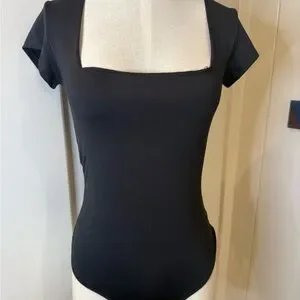 Free People Black Square Neck Bodysuit short sleeve. SZ S