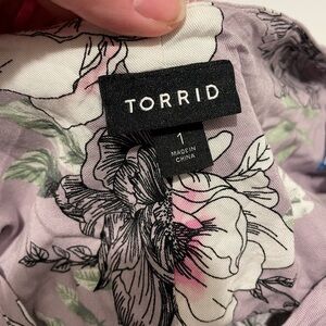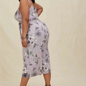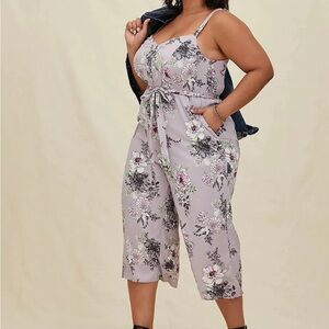 Torrid Brand 1 Floral Challis Self Tie Culotte Jumpsuit Romper Lilac Purple