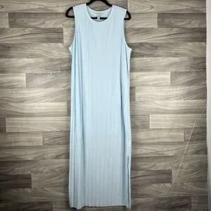 A New Day Maxi Dress Womens Large Blue Ribbed Sleeveless Round Neck Lagenlook