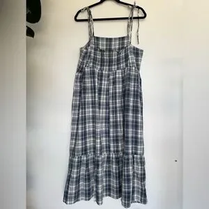 Anthropologie Gingham Plaid Babydoll Midi Dress