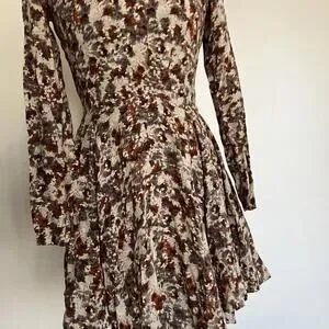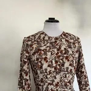 H&M Size 2 Floral Long Sleeve Fit & Flare Mini Dress Brown Orange Fall Summer
