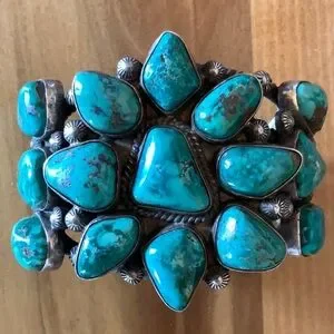 Honestly, if I’m being totally objective, this is the most beautiful bracelet I’ve ever seen!🥰I purchased it at Santa Fe Indian market seven years ago after obsessing about it for several days, I finally brought it home with me. I have worn it several times since, and every time I wear it, people come up to ask about it with kind compliments. It’s truly a statement piece—but it is comfortable and beautifully made. It is a heavy piece, but because of how beautifully it’s made and the way it fits, it doesn’t feel like a weighty piece of jewelry.