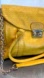 Yellow studded snakeskin-textured faux leather handbag gold-tone chain straps