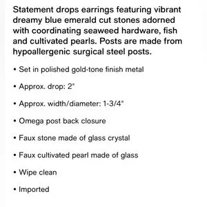NWT Betsey Johnson mermaid jewels Blue Crystal Drop Earrings