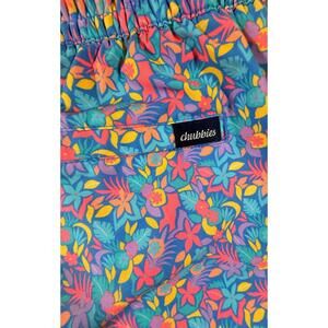 Machine washable for easy care, these tropical-themed swim trunks from Chubbies are a stylish and practical choice for any beach or pool outing.