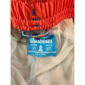 The Chubbies "The Spades" 5.5 Blue Floral Mesh Lined Swim Trunks in Men's Size M are made from a blend of polyester and spandex, featuring a vibrant blue floral pattern and a comfy mesh lining.