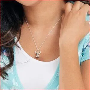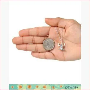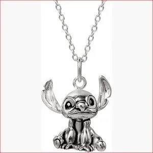 An officially licensed 3D pendant necklace featuring a sitting Stitch design. Crafted in fine sterling silver with an 18-inch chain, it's a meaningful piece ideal for gift-giving occasions.